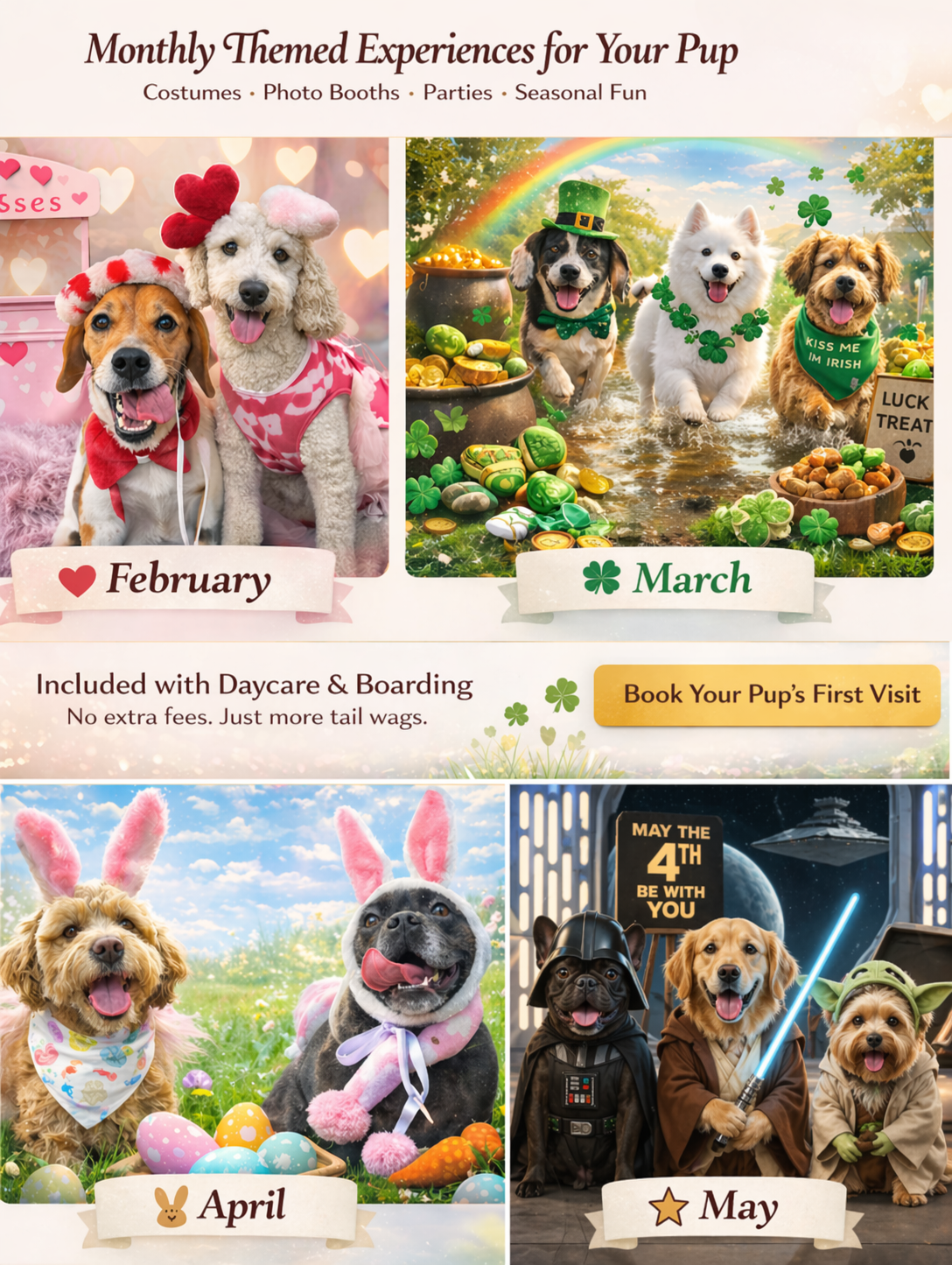 Add in seasonal themes, enrichment activities, and a little bubble-tastic fun—and you get a place pups genuinely enjoy coming to.